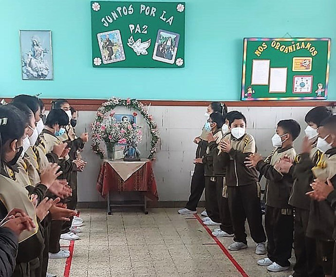 En un ambiente de alegría los niños y niñas de 2do grado de Primaria, recibieron a nuestra Divina Pastora. Ellos prepararon unos hermosos solapines y le entregaron a nuestra madre todas sus intenciones, para que sea luz en su camino.